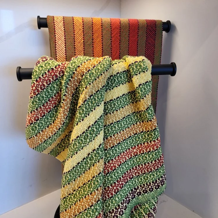 In addition to patterns and educational opportunities, I offer a limited selection of handwoven items made from premium, sustainable fibres. Each piece is designed to last, showcasing the beauty and artistry of traditional handweaving while adding a touch of uniqueness to your home or wardrobe.