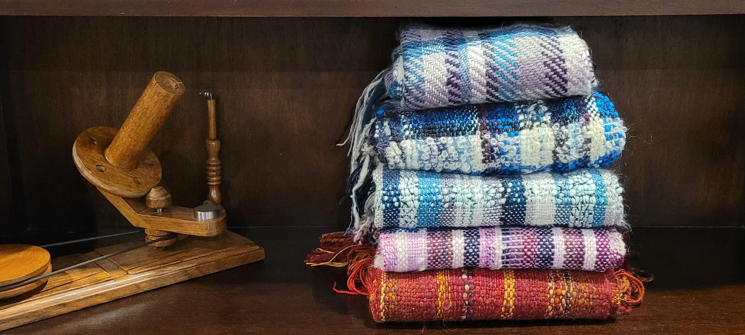 Why shouldn’t a bookshelf have a shelf dedicated to unused yarn (after all, it probably contains unread books)! Or a lovely stack of woven scarves?