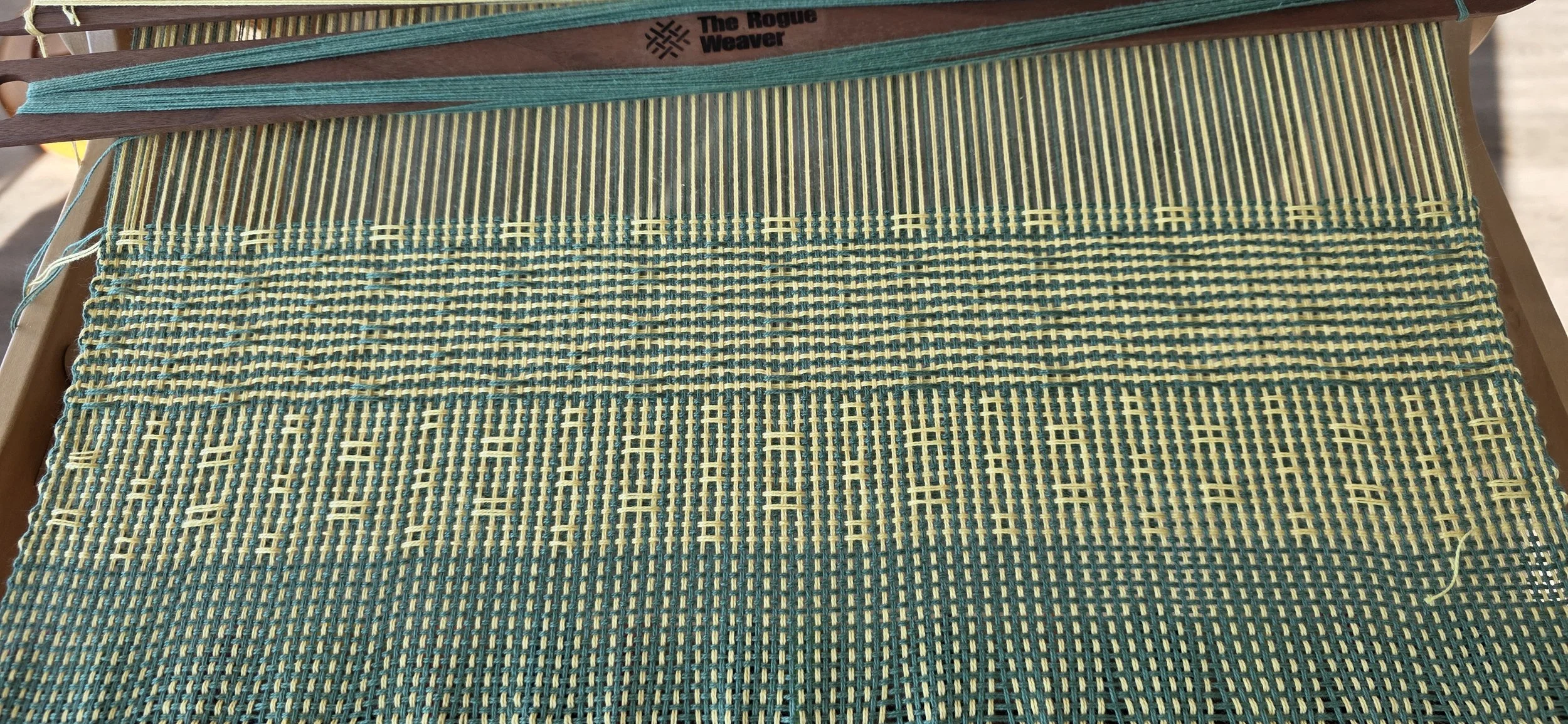 It’s easier to get into a rhythmic weaving flow. Right now, my weaving is being interrupted every 4 picks. It’s so easy to get into a rhythm and completely forget to add that stick!